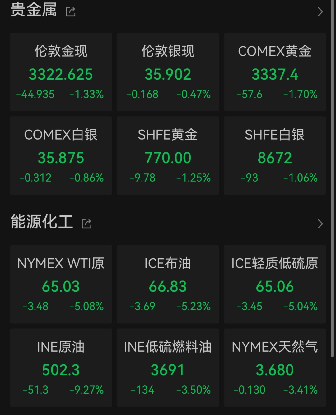 纳斯达克中国金龙指数上涨3.31%;国际原油价格大跌,贵金属价格纷纷下挫。